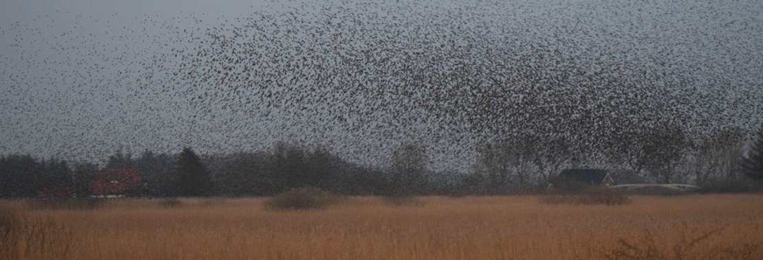 I Aventoft ved grænseovergangen Møllehus så vi stærene gå til ro. Det var et flot show med sort sol vi fik der. Der kom også traner og sølvhejrer forbi og en del rovfugle.